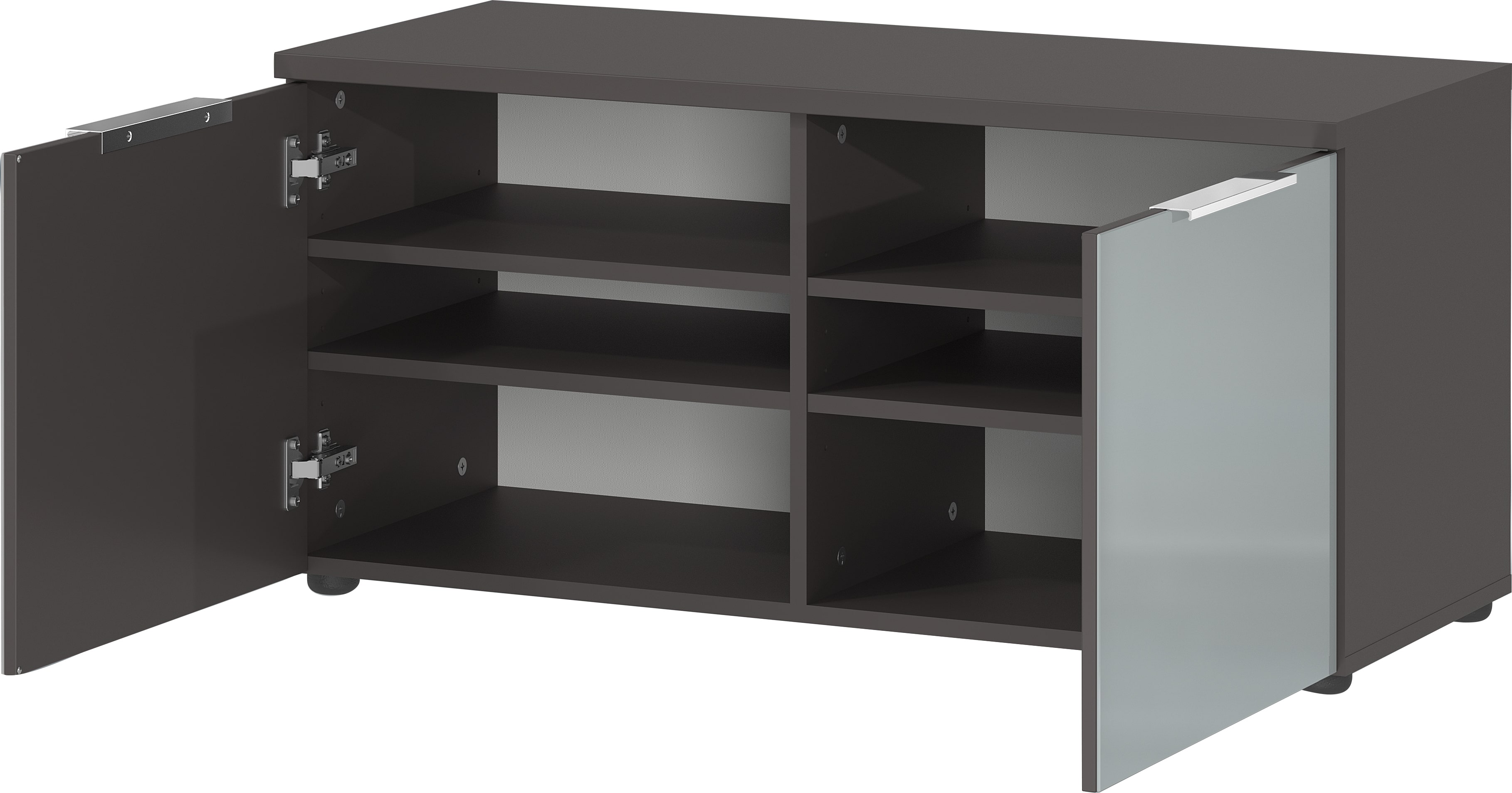 Ausstellungsstück zum Sonderpreis ! Nutzen Sie diesen Preisvorteil:· Korpus und Absatzfarbe Anthrazit· Front Eiche Nachbildung· 2 Türen · 2 Schübe· BHT ca. 96 x 103 x 40 cm