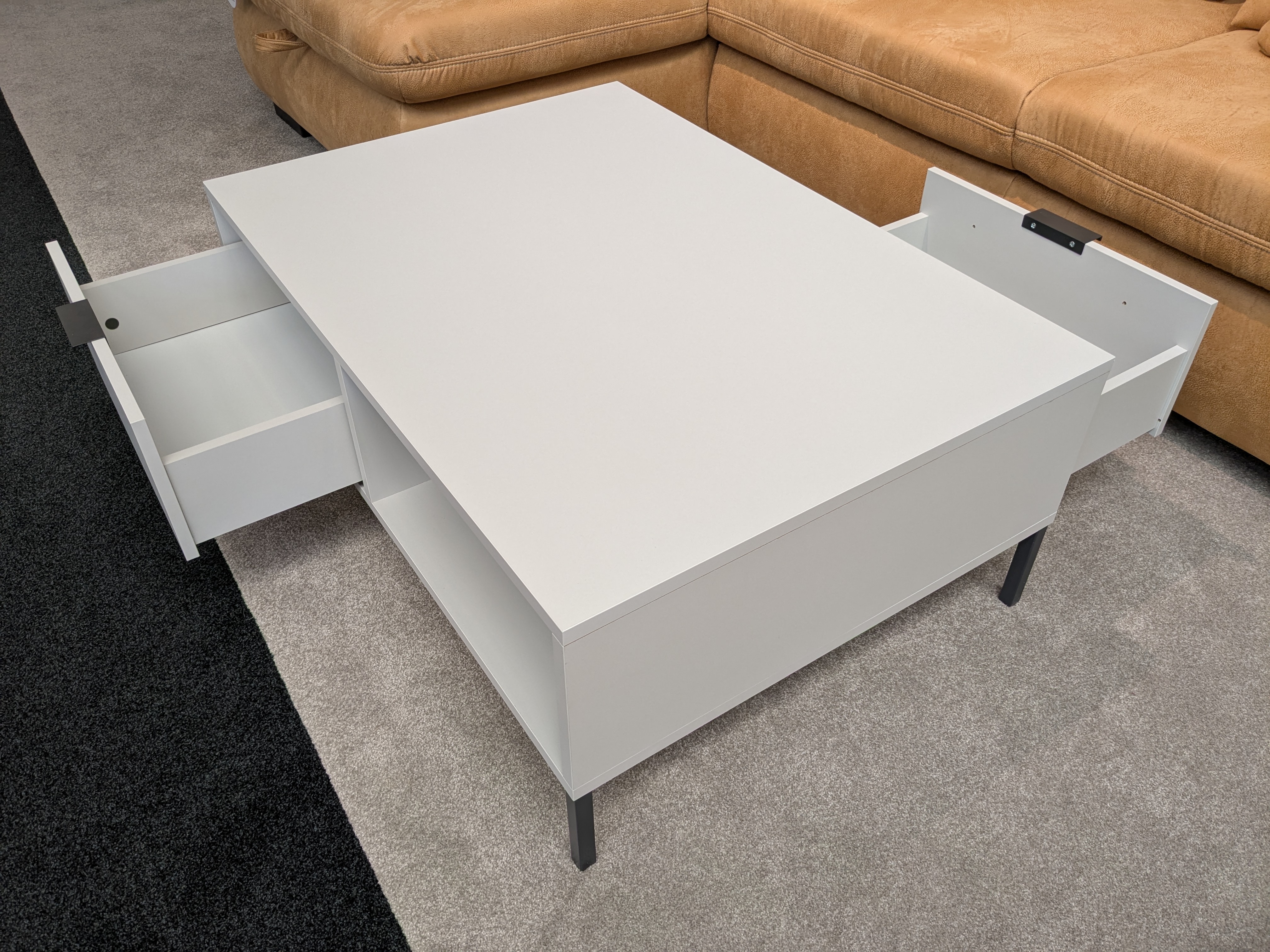 Bereichere Deinen Wohnbereich mit diesem modernen Couchtisch! Dieses Möbelstück ergänzt Deinen Wohnbereich mit einem modernen Design. Mit seinem praktischen Schub und dem offenen Fach, sowie mit einer pflegeleichten Oberfläche ist der der ideale Alltags-Begleiter. Er bietet Dir ausreichend Platz für Zeitschriften, Deko-Artikel und Alltagsgegenstände wie Fernbedienungen. Auf der Tischplatte kannst Du frische Blumen oder Schalen schön zur Geltung stellen. Der Couchtisch überzeugt mit seinem ansprechenden Look. Lass Dich von der Farb- und Fußauswahl inspirieren. Jetzt entdecken! Ohne Dekoration.
