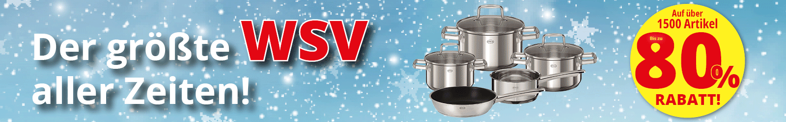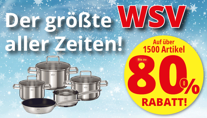 Der größte WSV aller Zeiten! Jetzt ist Sparen angesagt: Im Rahmen unseres Winterschlussverkaufs erhalten Sie auf über 1.500 Artikel Rabatte von bis zu 80 %. Von Möbeln über Haushaltswaren bis hin zu vielen weiteren Wohn- und Alltagsartikeln. Nutzen Sie die Gelegenheit, Ihr Zuhause neu auszustatten oder sich praktische Helfer für den Alltag zu sichern.